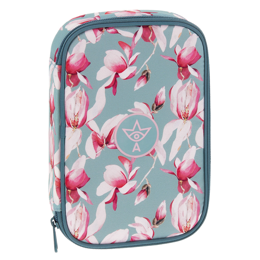 Többszintes, töltetlen, cipzáras tolltartó. Belül textillel bevont merev lapokkal, gumis kialakítással 30 ceruza számára az írószerek tárolásához és egy cipzáras belső zsebbel.