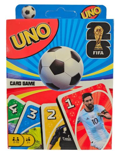 Az UNO FIFA kártyajáték a klasszikus UNO izgalmát hozza el a futball világába! A pakli látványos focis grafikákkal és FIFA hangulatú elemekkel készült, így minden parti igazi sportélménnyé válik.