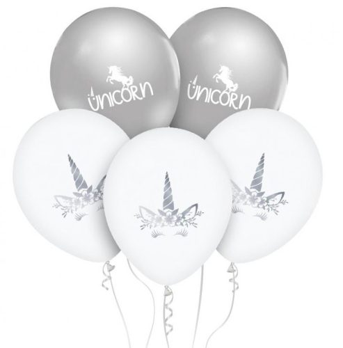 Unikornis Silver léggömb, lufi 5 db-os 12 inch (30cm)
