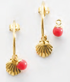 Victoria Arany színű piros gyöngyös kagyló mintás fülbevaló