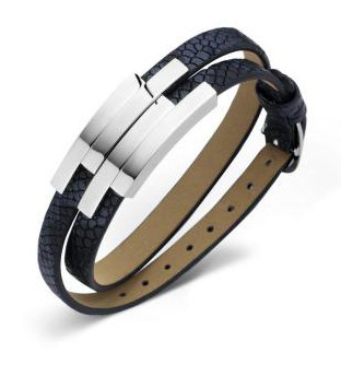Victoria Ezüst színű fekete bőr karkötő