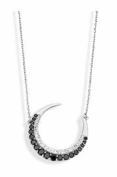 Victoria Ezüst színű fekete, fehér köves félhold nyaklánc