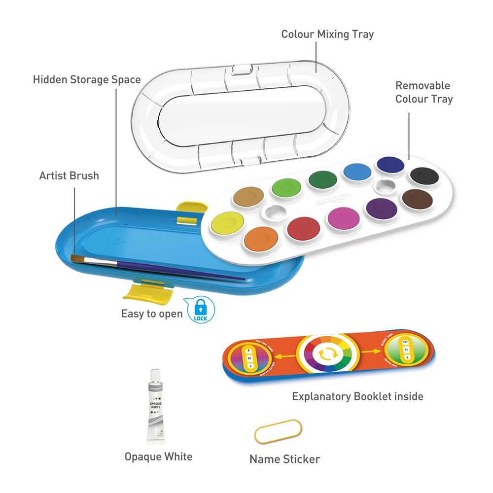 • gazdag színválaszték, élénk színek, 12 különböző 28 mm-es festékkorong