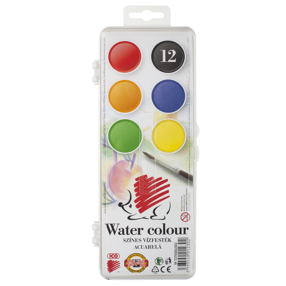 Vízfesték készlet, 12db-os, 30mm, festékgombokkal Süni Ico