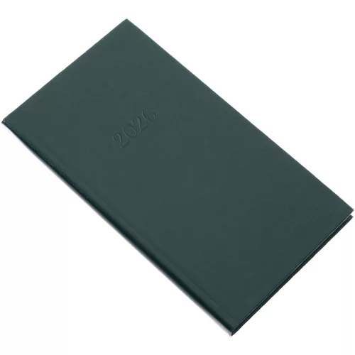 Zsebnaptár álló Standard, fehér lapokkal zöld Realsystem 2026.