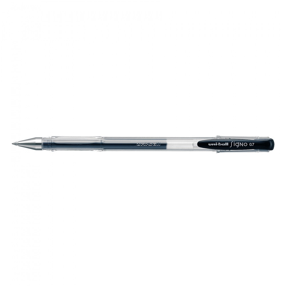 Rozsdamentes acél hegyű, átlátszó testű, nagy betétes, a tinta színével megegyező klipszű zselés toll. Jellegzetesen lágy, fényes írásmóddal, víz és UV-álló tintával, nagy színválasztékban. Írásvastagság: 0,3 mm. Betét: UMR-5.  Katalóguskód: 1522