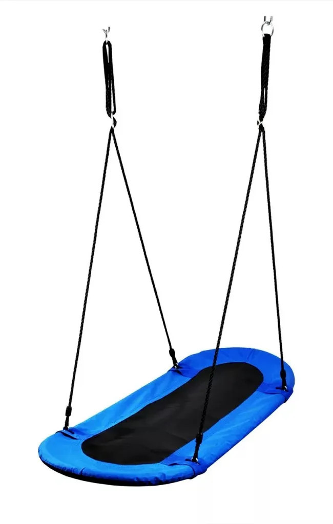 Az ovális forma extra stabilitást biztosít, miközben a széles felület nemcsak üléshez, hanem akár fekve pihenéshez is ideális. A masszív kötelek és a strapabíró anyaghasználat hosszú távú, biztonságos használatot garantálnak.