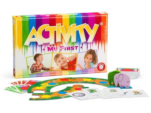 Két elefánt sétál keresztül az őserdőn, hogy elérjék a vizet, ahol a szomjukat olthatják. A sikeres megoldás jutalma az, hogy az elefánt tovább haladhat az ivóvíz felé. Az Activity My First társasjáték játszva fejleszti a gyerekek kommunikációs és rajz készséget, valamint az előadó képességét. A kártyákon lévő feladványokat a feliratok mellett kedves, színes rajzok is ábrázolják, így azok a gyermekek is könnyedén, vidáman részt vehetnek a játékban, akik még nem, vagy csak kicsit tudnak olvasni. Az Activity My First egy vidám kommunikációs társasjáték az egész család számára!