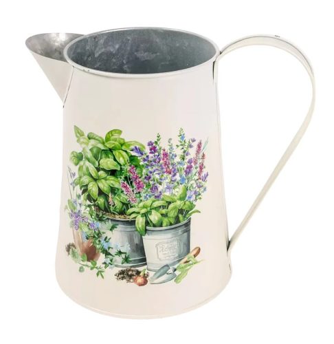 Ez a gyógynövény mintás bádog kiöntő kellemes, természetes hangulatot hoz bármely otthonba, és nemcsak praktikus kiegészítőként, hanem dekorációként is igazán jól mutat. A finom, részletgazdag gyógynövényes minta frissességet sugároz, miközben a világos alapszín és a klasszikus forma könnyedén illeszkedik vidéki, romantikus vagy rusztikus stílusú környezetbe is, legyen szó konyháról, nappaliról vagy akár az ünnepi asztalról.