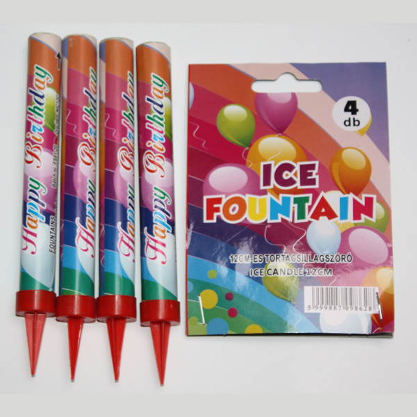 "Szikraszökőkút" - tortagyertya. 4 db/csomag. Magasság 12 cm. Működési idő: 35-40 másodperc / darab.