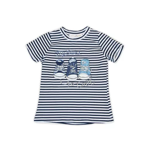 Pamut póló strasszokkal, cipőmintával díszítve - csíkos - 122