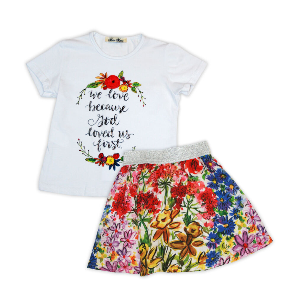 Virágmintás nyári szett kislányoknak - pamut szett - fehér-virágos - 122