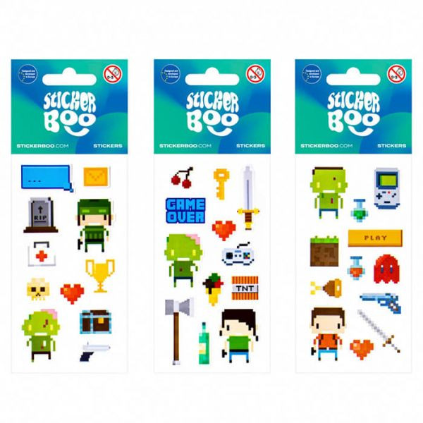 A matrica csomag három különböző változatban érhető el, így a gyerekek többféle pixel karakterrel és játékelemekkel találkozhatnak. A csomag kompakt méretének köszönhetően könnyen elfér egy táskában vagy tolltartóban is.