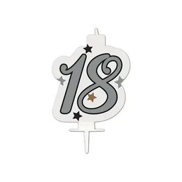 Happy Birthday Silver tortagyertya, számgyertya 18-as