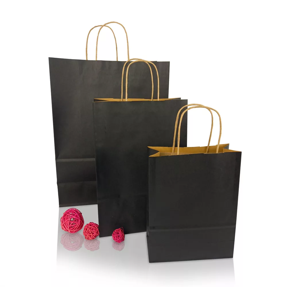 Sodrottfüles papírtáska 220x330mm 100mm talp M méret 200 db/doboz, fekete