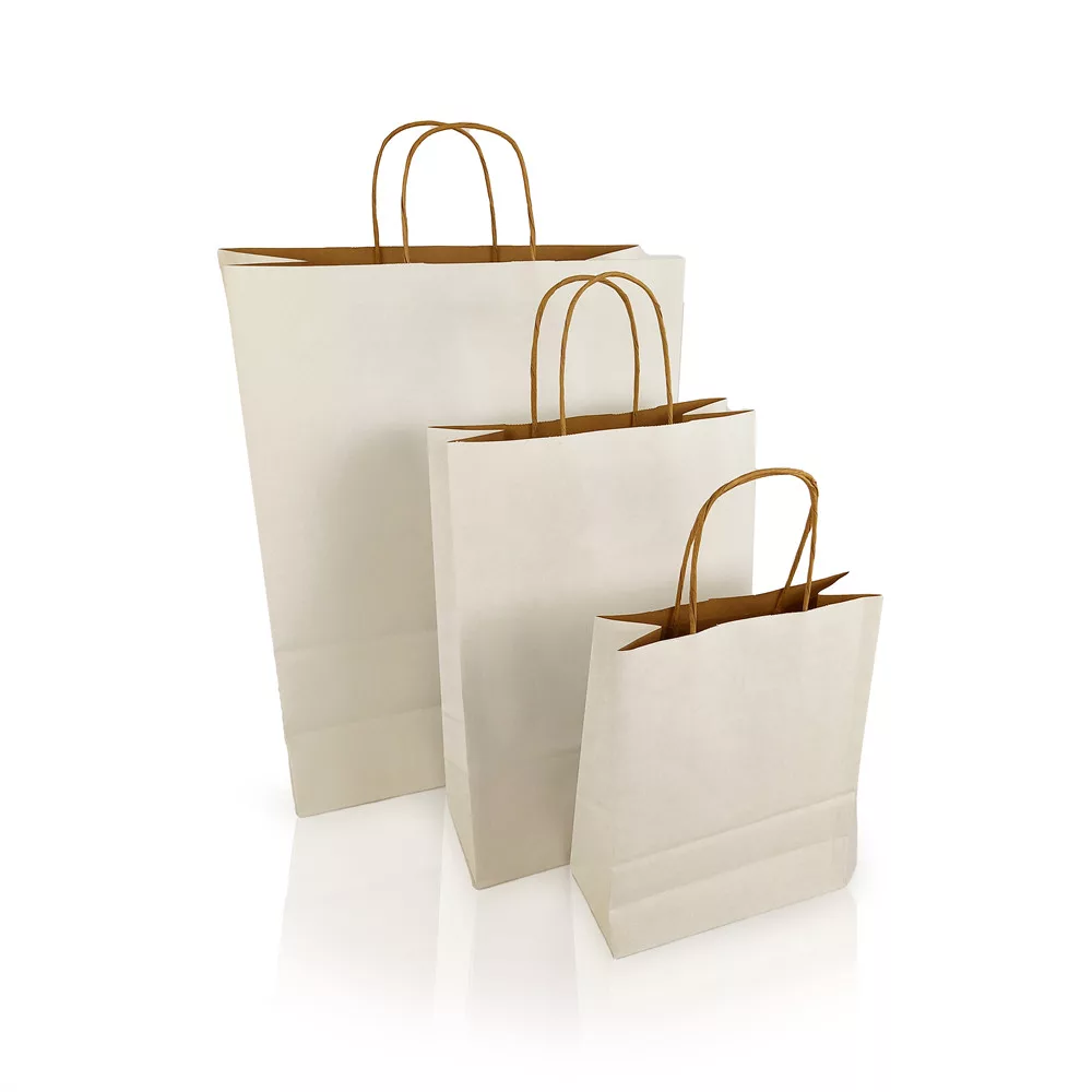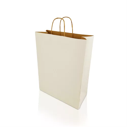 Sodrottfüles papírtáska 320x420mm 150mm talp L méret 200 db/doboz, fehér