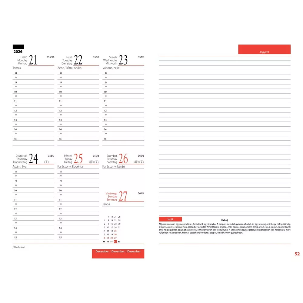 • 108 oldal heti beosztású naptár 2026. augusztus 17.- 2027. augusztus 22.-ig