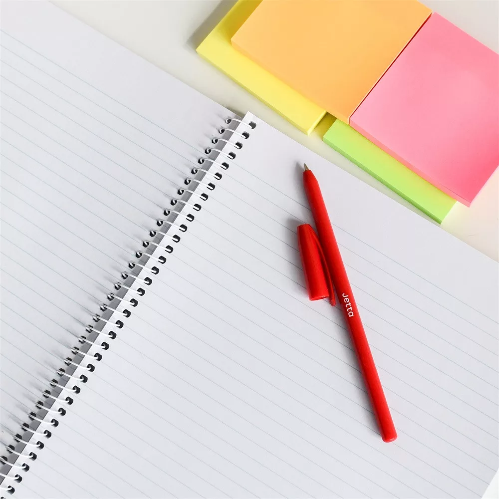 Nem cserélhető betétes, hatszögletű, légáteresztő biztonsági kupakos, színes testű golyóstoll 4 alapszínben. Az írás színe azonos a test színével.