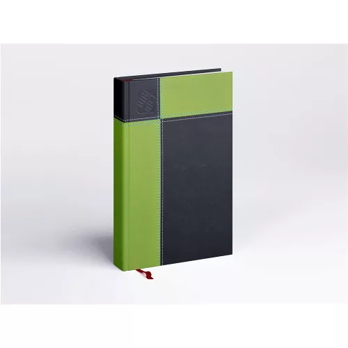 Határidőnapló Prémium M A/5, napi krémszínű lapokkal zöld Realsystem 2026.