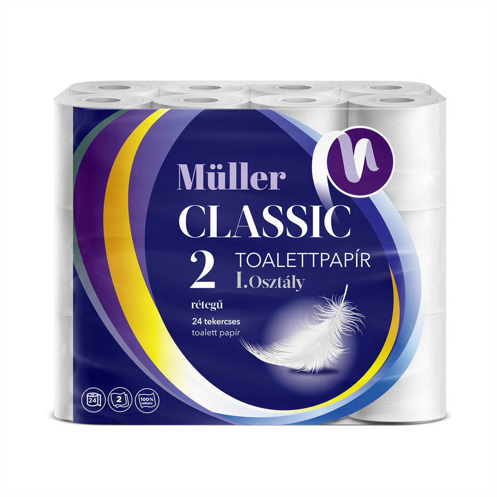 TOALETTPAPÍR 2 RÉTEGŰ KISTEKERCSES 100% CELLULÓZ 100 LAP/TEKERCS 24 TEKERCS/CSOMAG MÜLLER CLASSIC