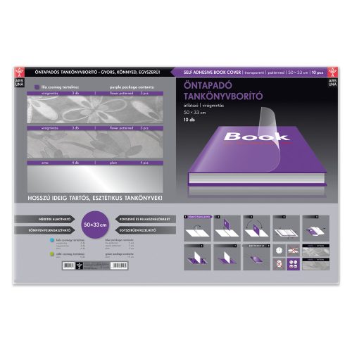 Tankönyvborító öntapadó, 50x33cm, 10 ív/csomag, Ars Una, virágmintás