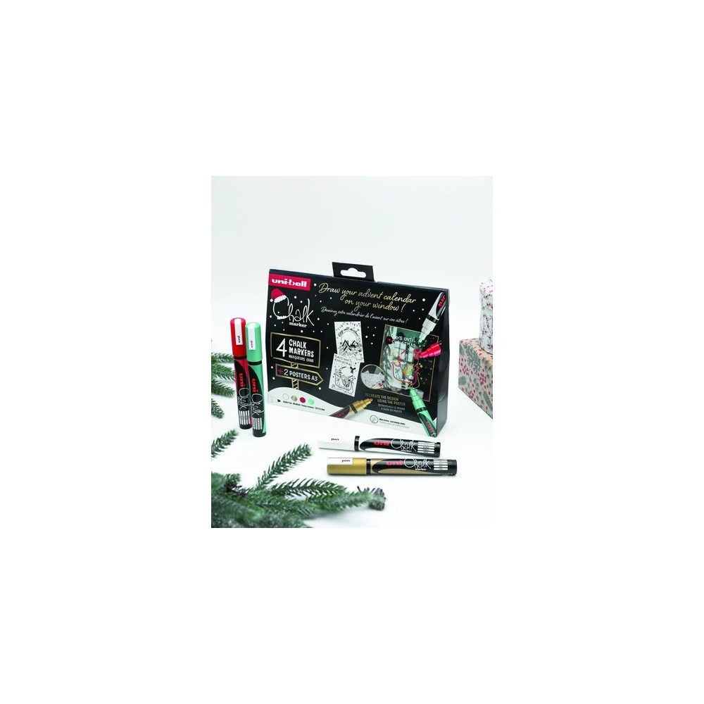 Krétamarker folyékony 1,8-2,5mm Uni-Posca PWE-5M 4 db-os Karácsonyi készlet