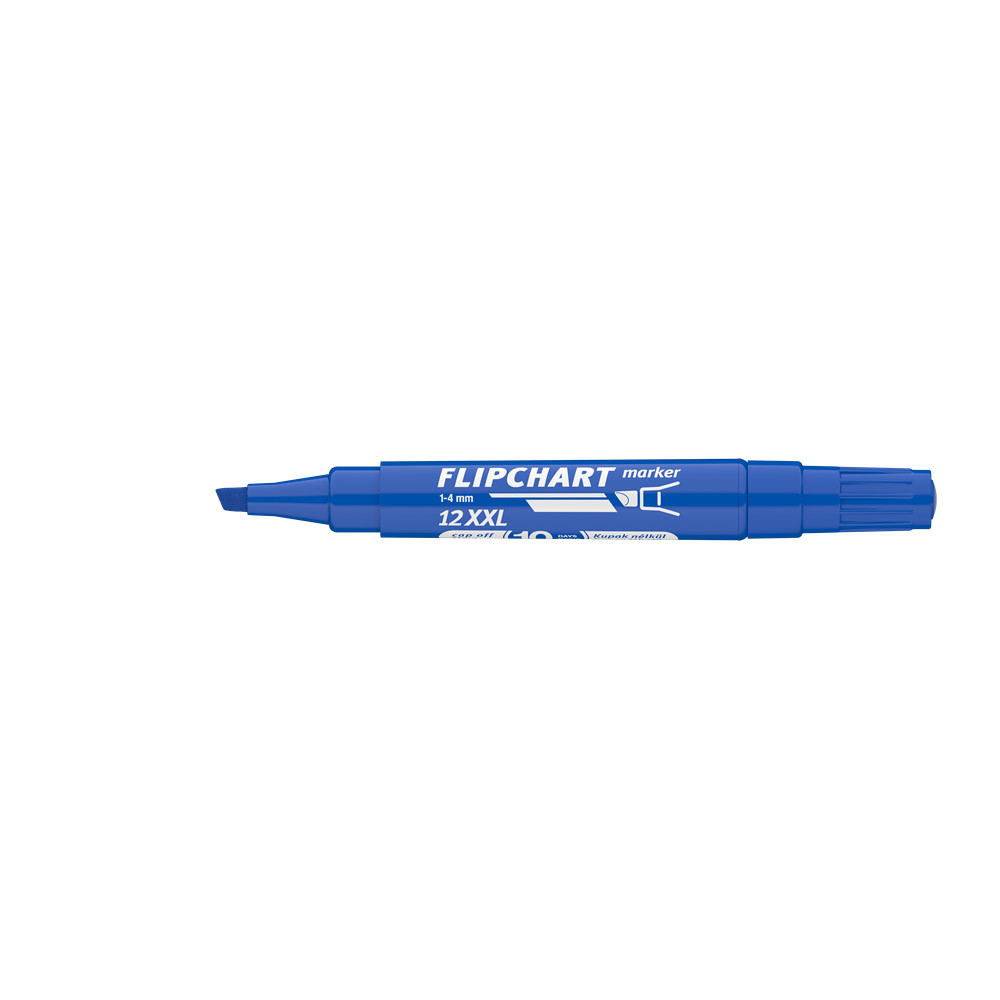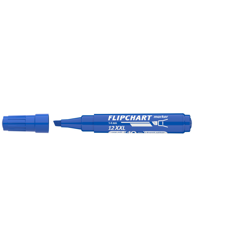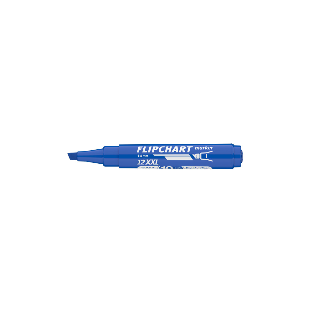 Flipchart tömbök és egyéb papírívek feliratozására alkalmas, vízbázisú festékkel töltött marker. A festék a papír másik oldalára nem üt át. Megnövelt élettartam a nagyobb méretű testnek köszönhetően. Vágott csúccsal. Vonalvastagság: 1-4 mm. Katalóguskód: 19136