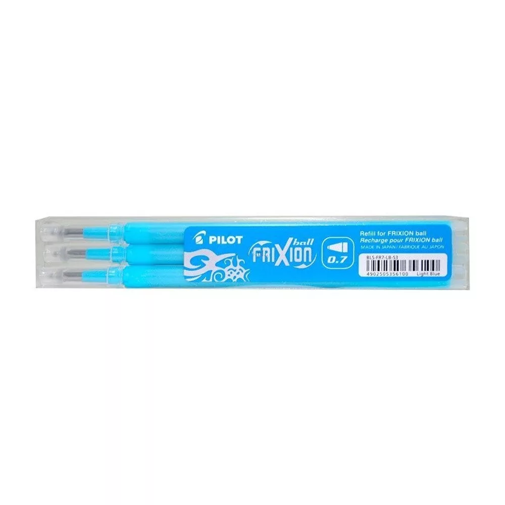 Rollertoll betét golyóméret 0,7mm, 3 db/csom Pilot Frixion Ball/Clicker, írásszín világoskék
