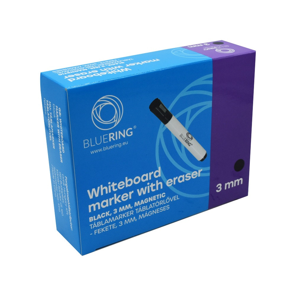 TÁBLAMARKER 3MM MÁGNESES, TÁBLATÖRLŐVEL MULTIFUNKCIÓS FEKETE BLUERING