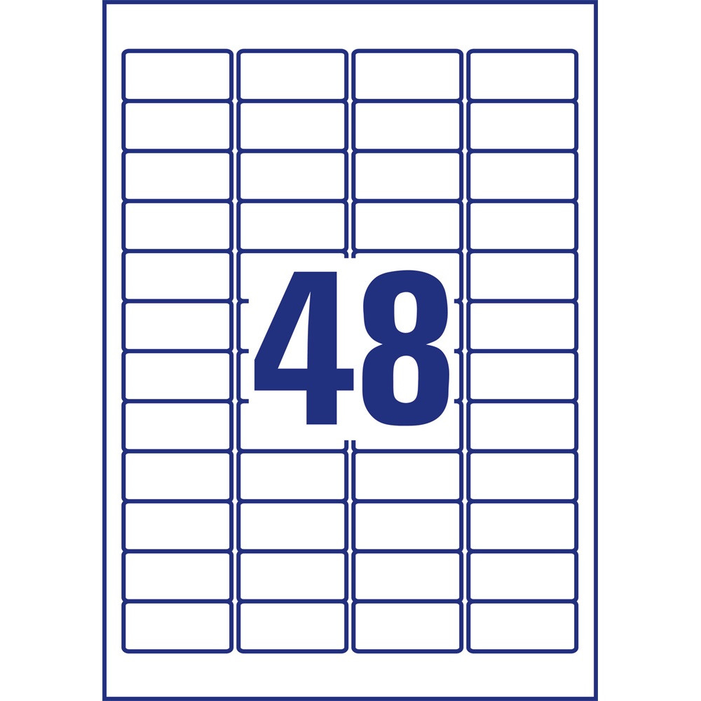 Etikett címke, 45,7 x21,2mm, univerzális visszaszedhető, 48 címke/ív, 25 ív/doboz, Avery fehér