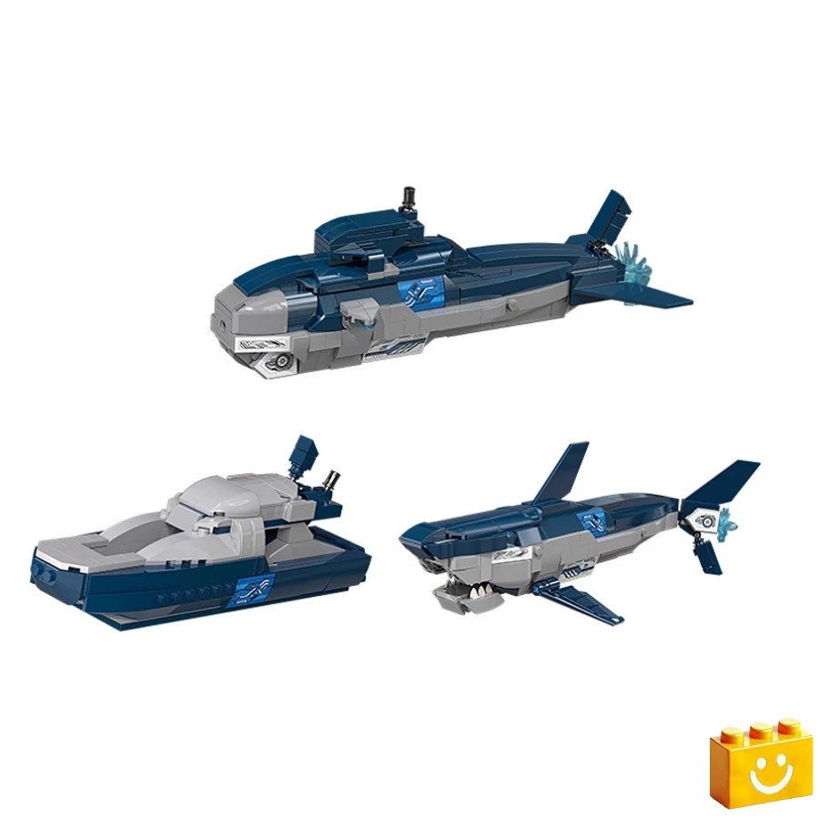 QMAN® márkájú, minőségi, készségfejlesztő építőjáték készlet. Egy kihagyhatatlan 3 az 1-ben ajánlat! Cápa, tengeralattjáró vagy járőrhajó? Bármelyiket megépítheted, majd egyszerűen átépítheted, így megunhatatlan a játék!