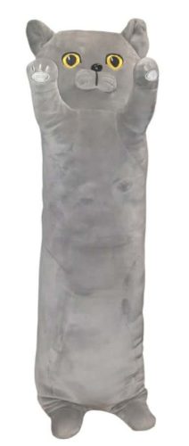 Hosszú cica ölelő plüss párna – szürke, 60 cm