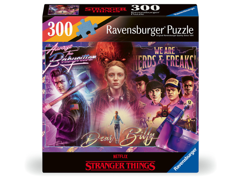 A Ravensburger Stranger Things 300 darabos puzzle tökéletes választás a népszerű Netflix sorozat rajongói számára. A látványos grafika a Stranger Things világának ikonikus karaktereit és jeleneteit idézi meg, így igazi élményt nyújt a kirakás minden pillanata.
